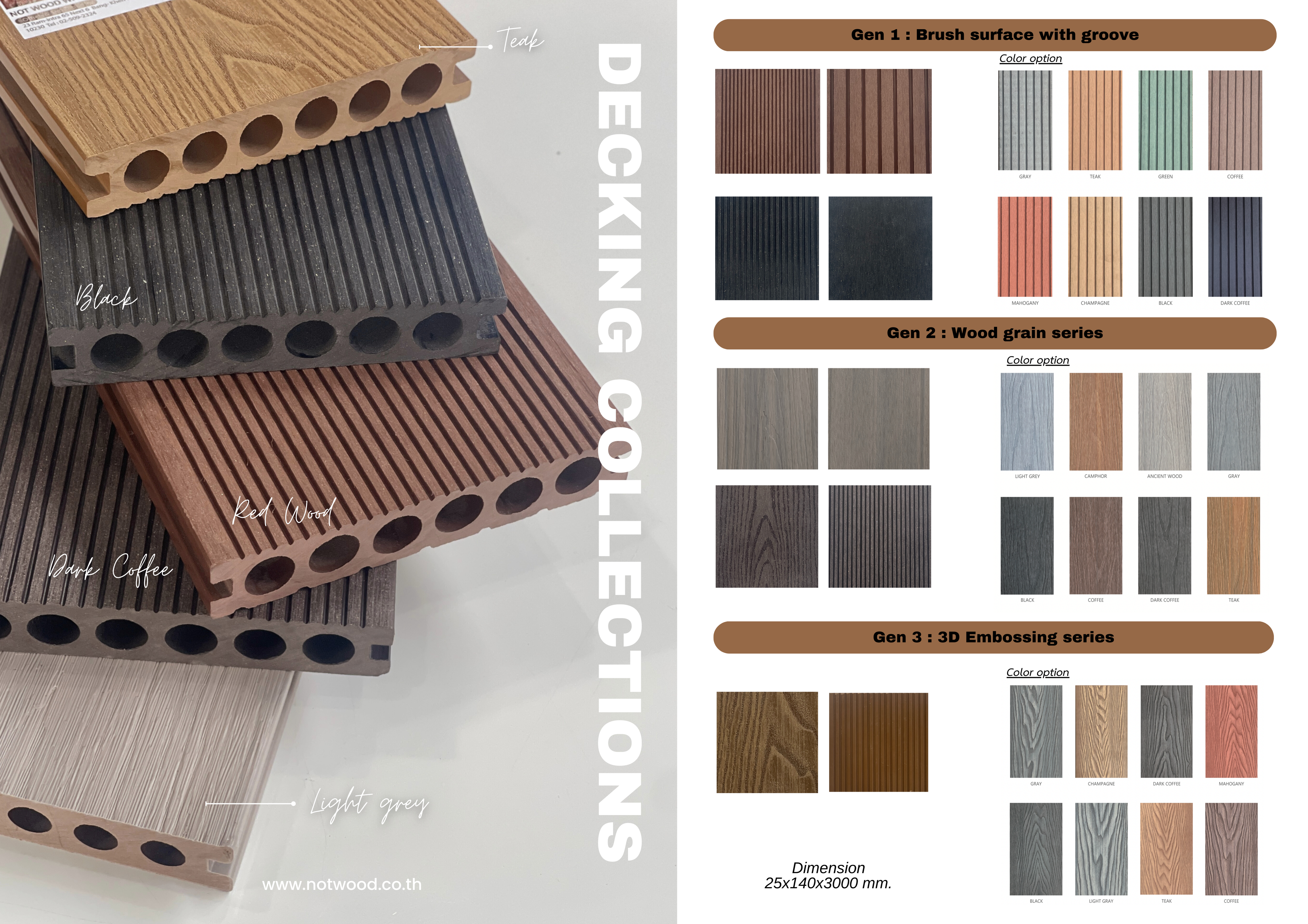 แผ่นพื้นไม้เทียม wpc decking / ไม้สังเคราะห์ wpc คุณภาพสูง Mood & Tone อบอุ่น ดีไซน์ คลาสสิก เสมือนไม้จริง รองรับได้ทั้งงานภายในและภายนอก สินค้าแผ่นพื้นไม้เทียม สำหรับภายนอก สวย ทนทาน เลือกสินค้าได้ที่ นอท วูด จัดจำหน่าย แผ่นพื้นไม้เทียม wpc decking