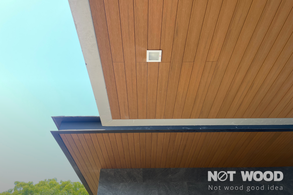 งานติดตั้งฝ้าไม้เทียม Project : ศาลาในสวนข้างบ้าน ลูกค้าเลือกใช้ฝ้าไม้เทียม Not wood สี Tiger wood ซึ่งเป็นฝ้าไม้เทียมโทนสีสัก มาตกแต่งฝ้าและผนังบริเวณศาลาในสวนข้างบ้าน เข้ากับสวนข้างบ้าน ที่ได้จัดวางมาอย่างสวยงาม ลงตัว #ฝ้าไม้เทียม #ติดตั้งฝ้าไม้เทียม #ไม้เทียมโทนสีสัก