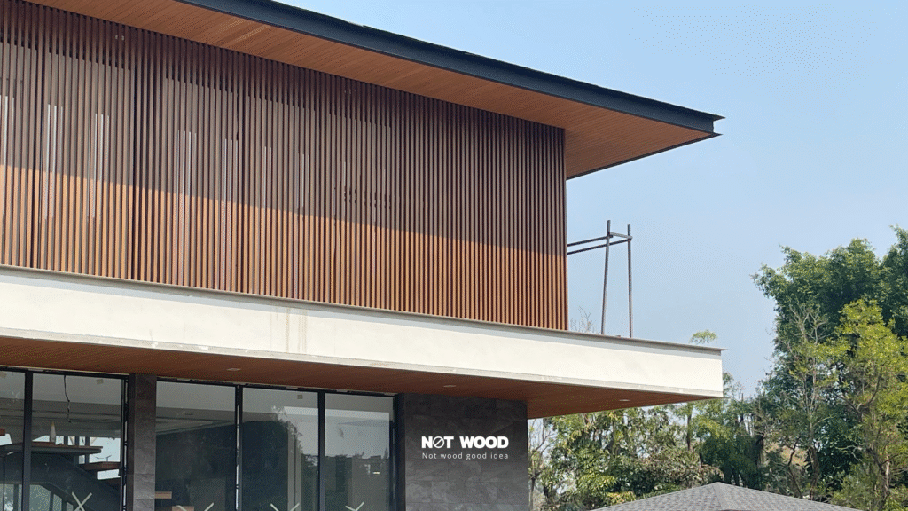 Project : ศาลาในสวนข้างบ้าน ลูกค้าเลือกใช้ฝ้าไม้เทียม Not wood สี Tiger wood ซึ่งเป็นฝ้าไม้เทียมโทนสีสัก มาตกแต่งฝ้าและผนังบริเวณศาลาในสวนข้างบ้าน เข้ากับสวนข้างบ้าน ที่ได้จัดวางมาอย่างสวยงาม ลงตัว #ฝ้าไม้เทียม #ติดตั้งฝ้าไม้เทียม #ไม้เทียมโทนสีสัก